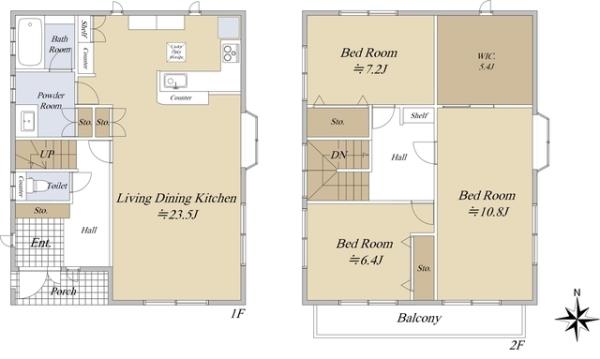| 間取内訳 | LDK23.5畳 洋室10.8畳 洋室7.2畳 洋室6.4畳 | ||
