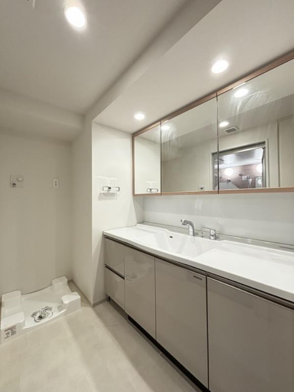 広々とした洗面台・3面鏡