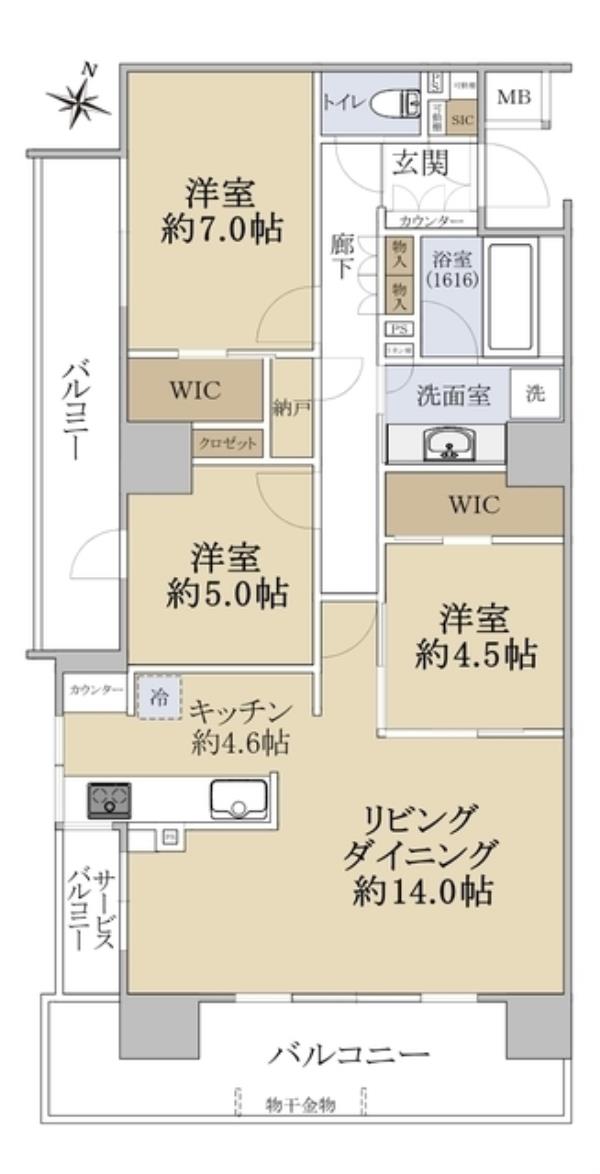 | 間取内訳 | LDK18.6畳 洋室7.0畳 洋室5.0畳 洋室4.5畳 | ||
