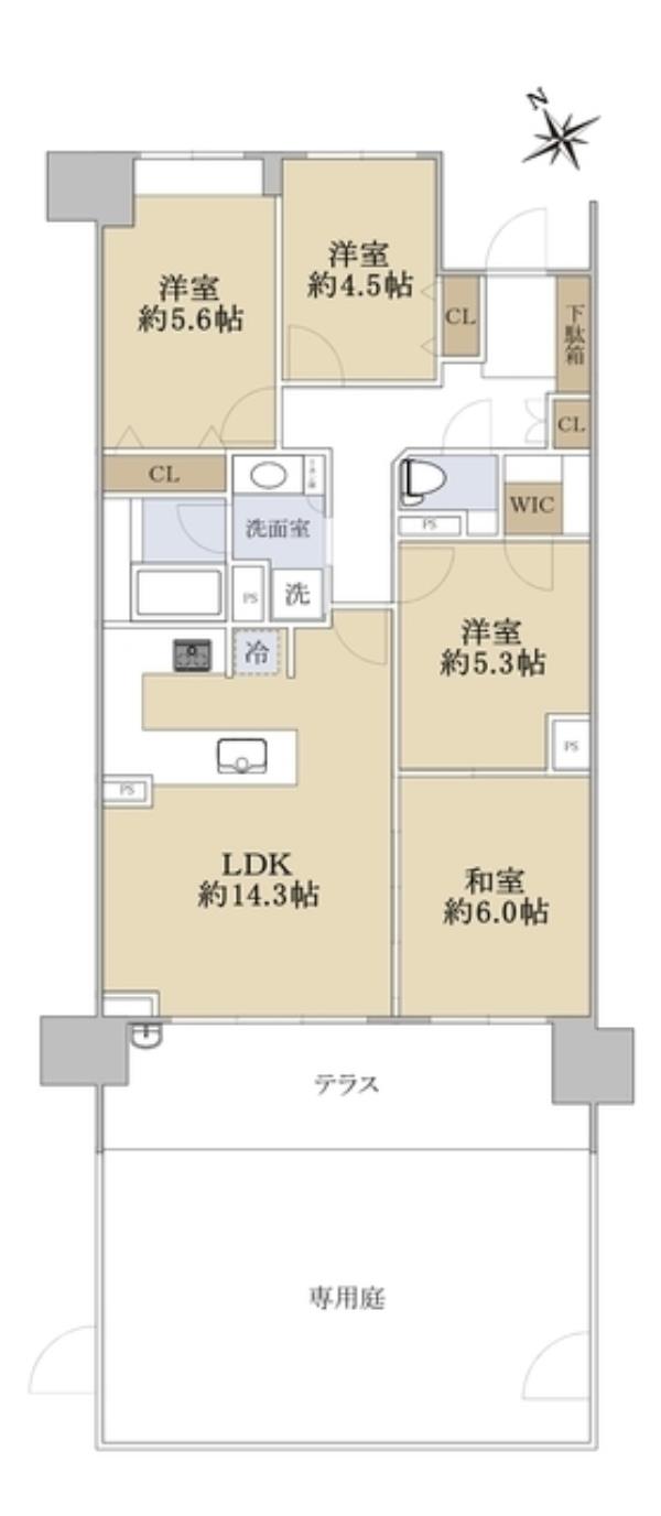 | 間取内訳 | LDK14.3畳 洋室5.6畳 洋室4.5畳 洋室5.3畳 和室6.0畳 | ||