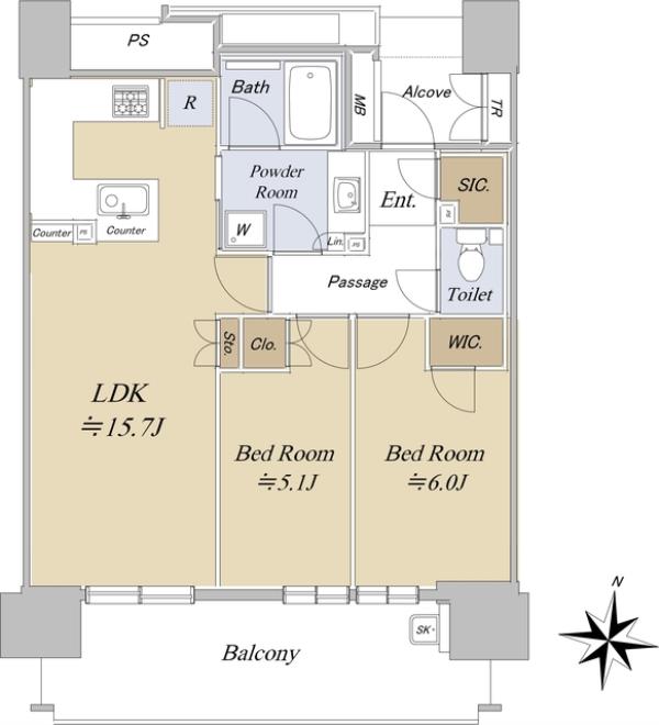| 間取内訳 | LDK15.7畳 洋室6.0畳 洋室5.1畳 | ||