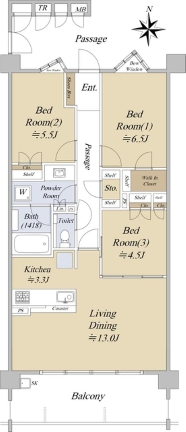 | 間取内訳 | LDK16.3畳 洋室4.5畳 洋室5.5畳 洋室6.5畳 | ||