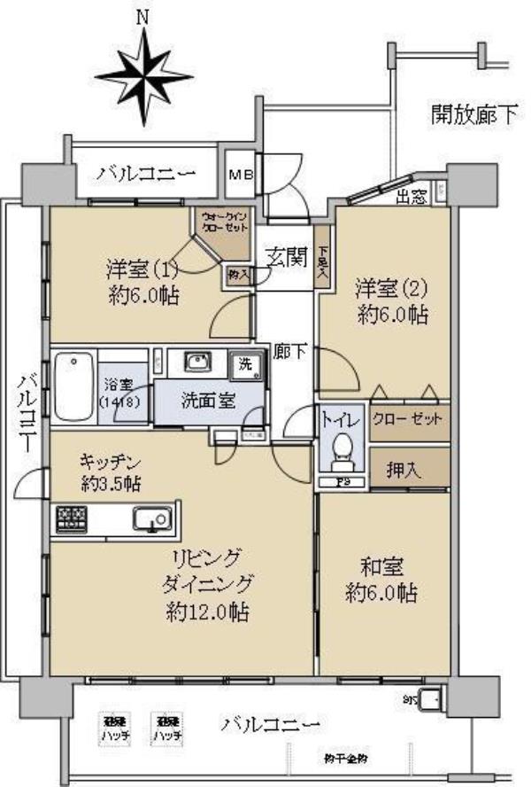 | 間取内訳 | LDK15.5畳 洋室6.0畳 洋室6.0畳 和室6.0畳 | ||