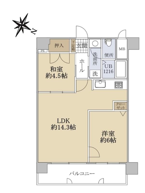 | 間取内訳 | LDK14.3畳 洋室6.0畳 和室4.5畳 | ||