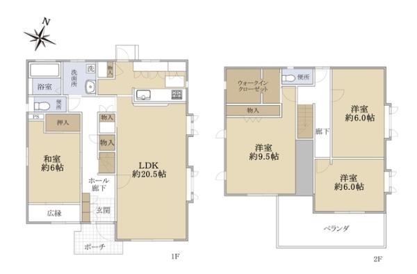 | 間取内訳 | LDK20.5畳 洋室9.5畳 洋室6.0畳 洋室6.0畳 和室6.0畳 | ||