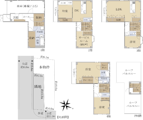 • 南道路(南西・南東含む)に接道