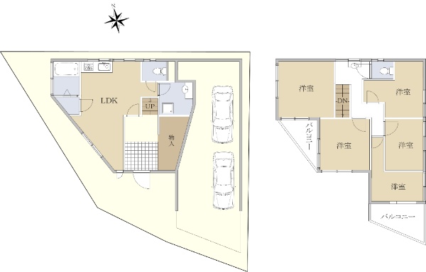 3駅4路線利用可能 5LDK ビルトインガレージ付き(車種による)