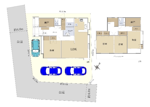 カースペース1台分、カーポート2台分有り(車種による)