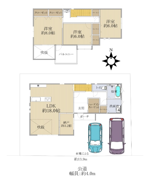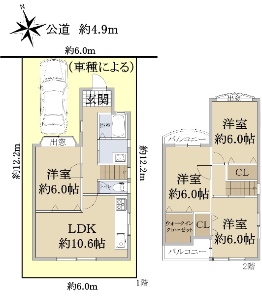 ◆両面道路(南・北) ◆土地30.29坪 ◆駐車2台可(車種による)
