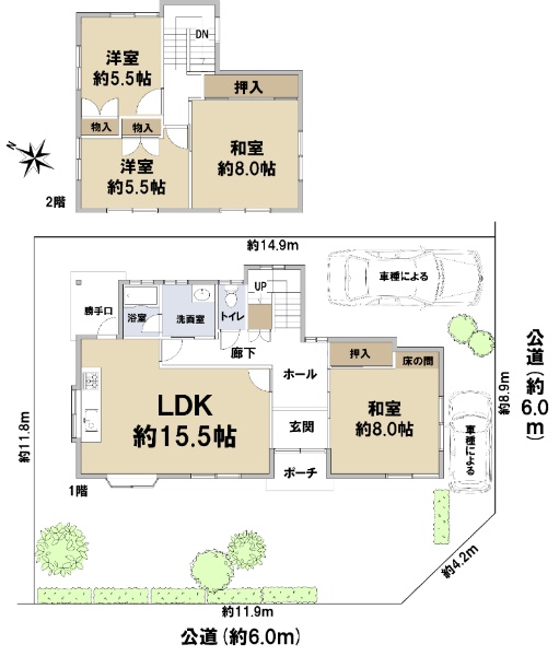☆土地約52.63坪 ☆駐車2台可(車種による) ☆角地(南西・南東)