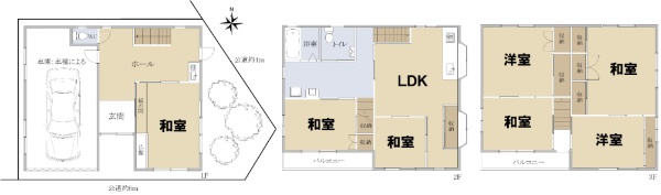 ■車庫(車種による)付木造3階建住宅 ■LDK約22.0帖