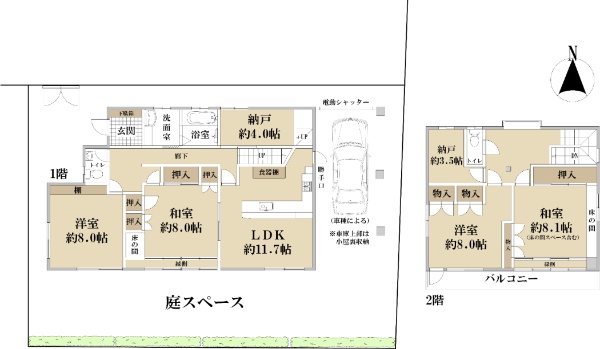 土地面積73.94坪 全居室南向きで陽当たり良好 お庭のあるお家