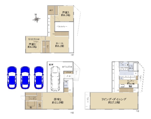 駐車4台可能☆三方接道の角地☆土地約53坪・建物約50坪☆