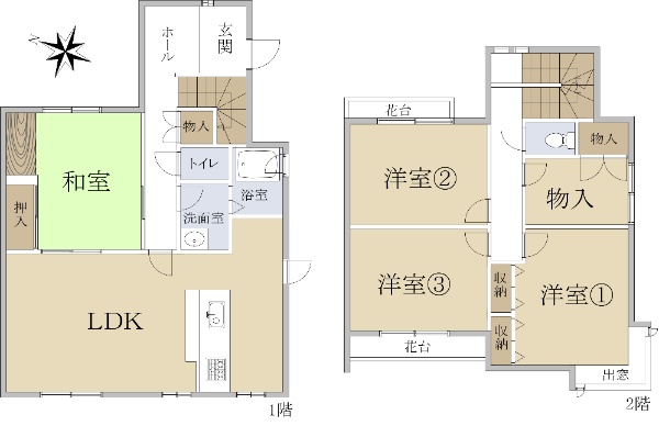 2000年12月築・木造2階建3SLDK+WIC+屋根裏収納・駐車スペース有