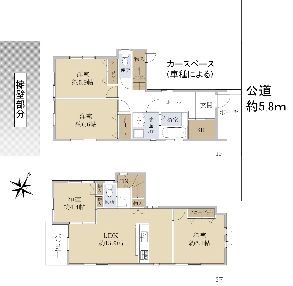 ■駐車場2台(車種による) ■土地面積 224.84u(68.01坪)