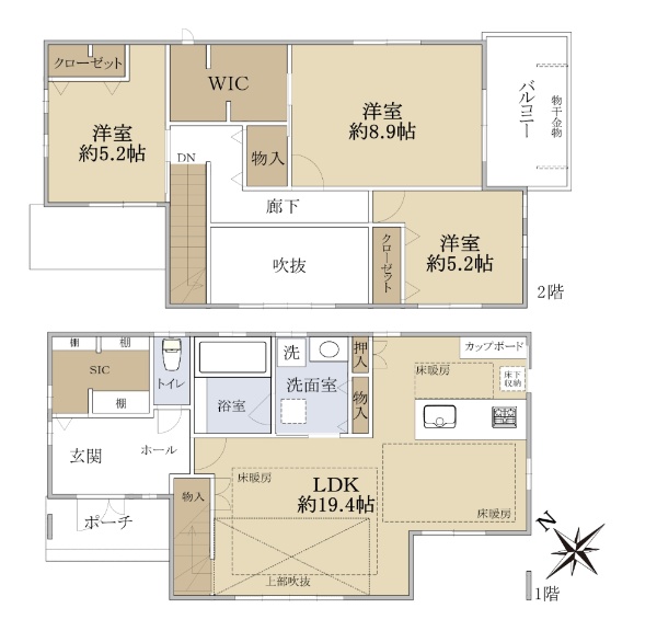 2019年6月築の戸建!南西向き日当たり良好・3台分駐車可(車種による)