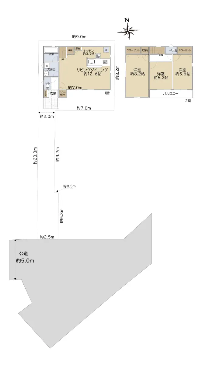 | 接道状況 | 一方道路・南5m(公道)接面2.5m |