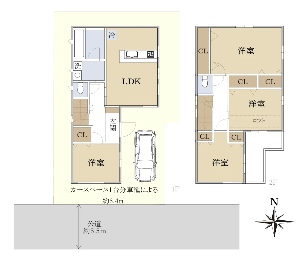 | 接道状況 | 一方道路・南5.5m(公道)接面6.4m |