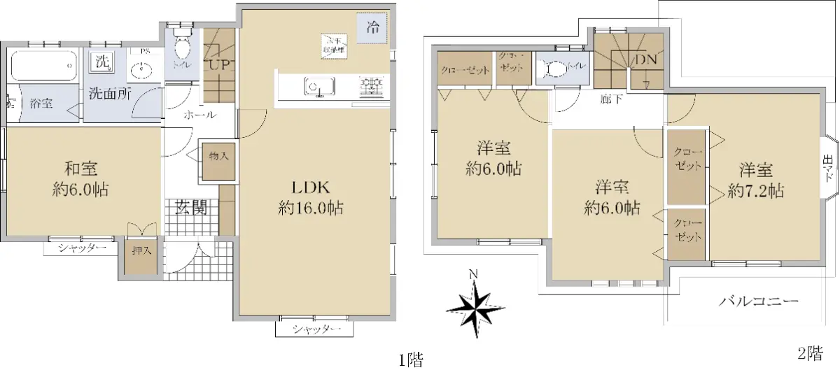 2階 洋室約7.2帖 洋室約6.0帖 洋室約6.0帖