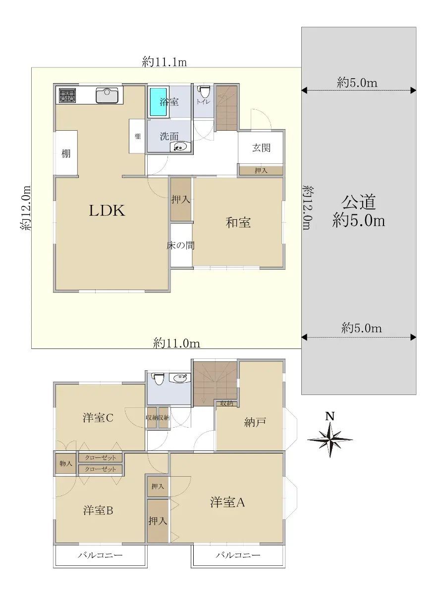 | 接道状況 | 一方道路・東5m(公道)接面12m |