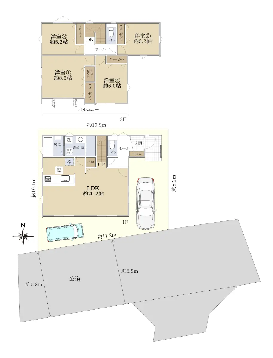 | 接道状況 | 一方道路・南5.8m(公道)接面11.2m |