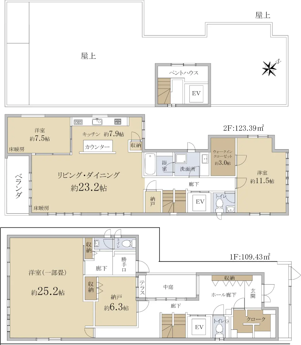 建物面積232.82m2(約70.42坪)・間取り3LDK・2017年05月築