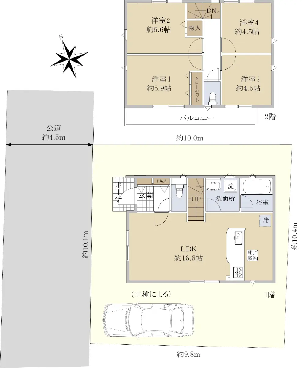 | 接道状況 | 一方道路・西4.5m(公道)接面10.1m |