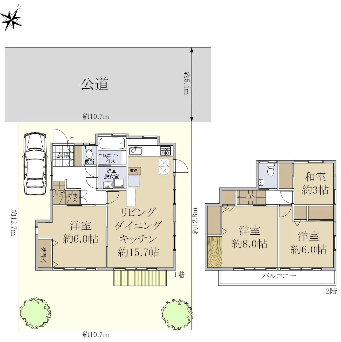 | 接道状況 | 一方道路・北西5.4m(公道)接面10.7m |