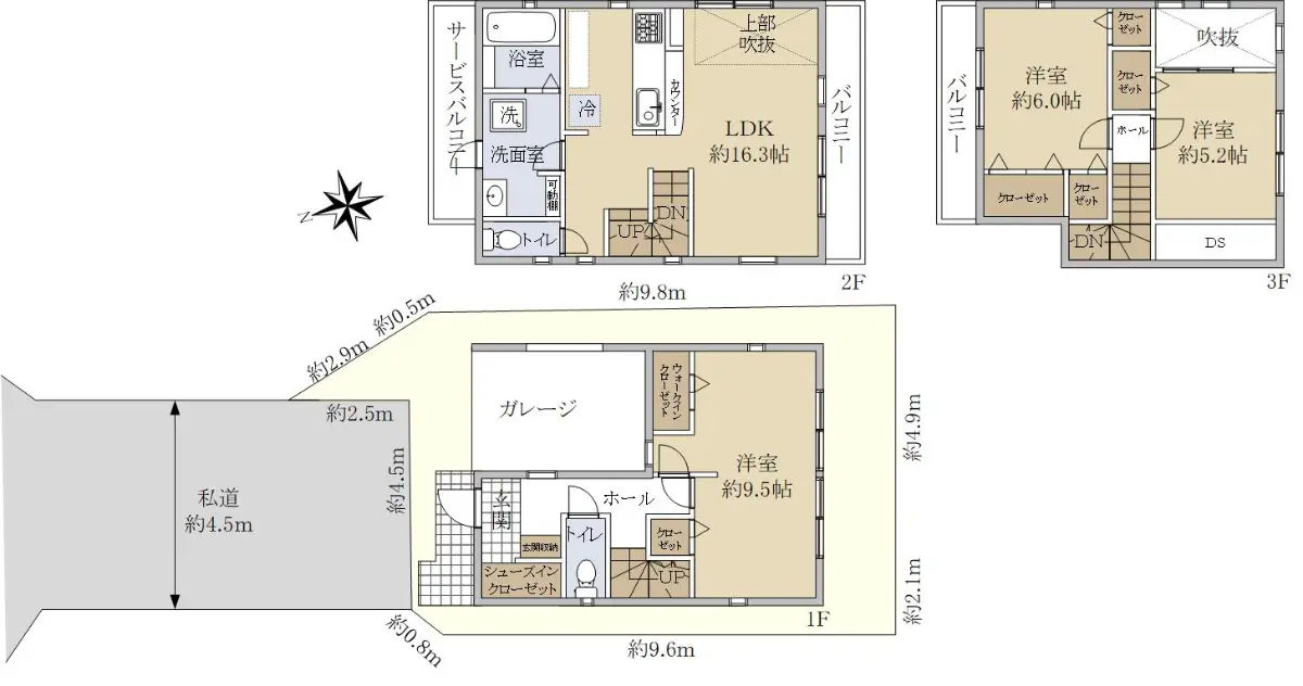 ◆建物面積:96.46u(公簿)1F:29.81 2F:39.74 3F:26.91
