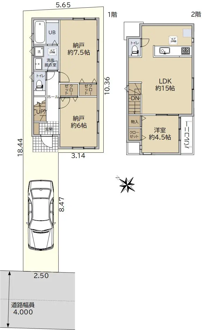 | 接道状況 | 一方道路・南西4m(私道)接面2.5m |