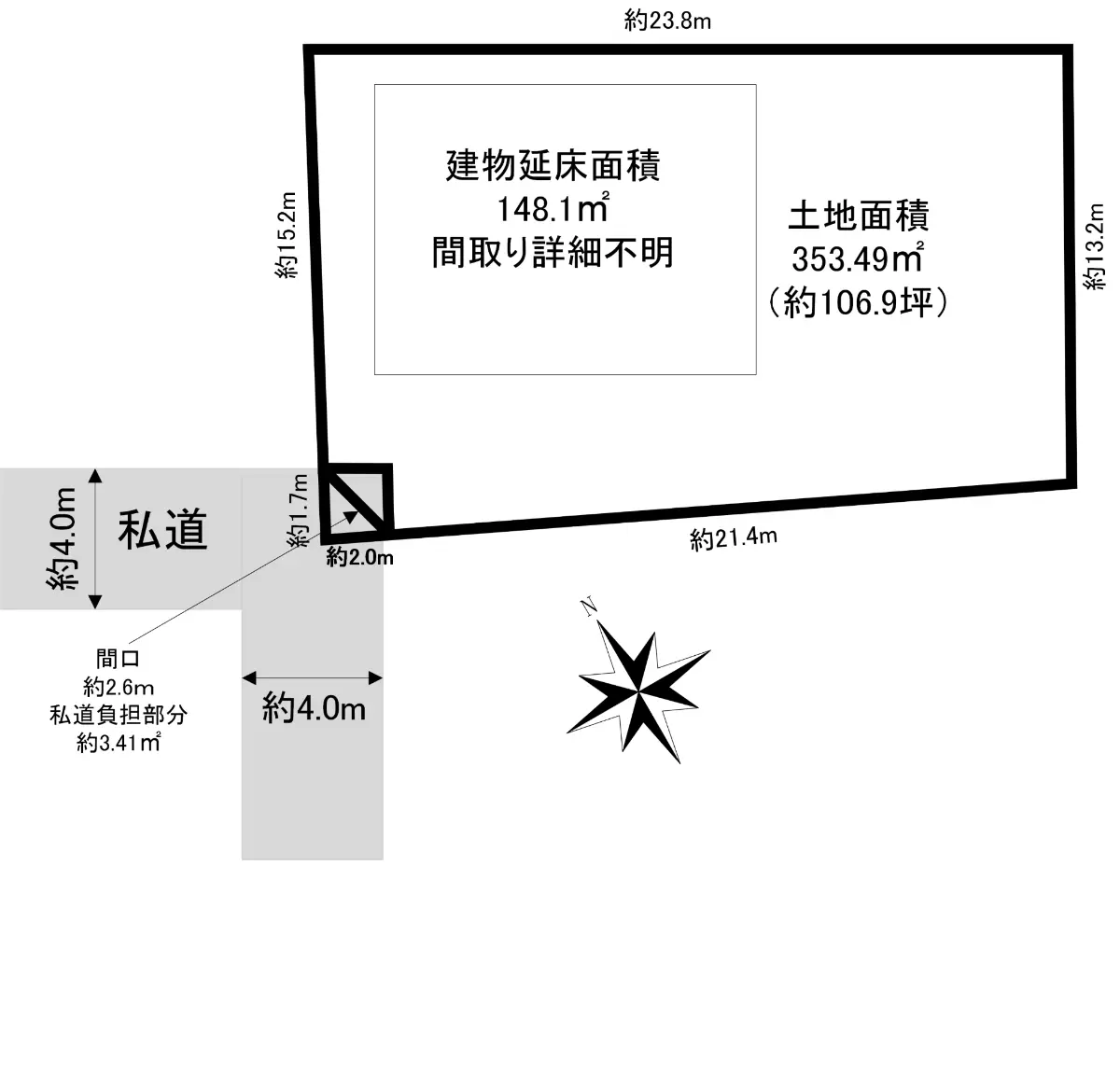 | “y’n–ÊÏ | 353.49m2(–ñ106.93’Ø)^‘¼‚ÉŽ„“¹•‰’SF3.41m2‚ ‚è |