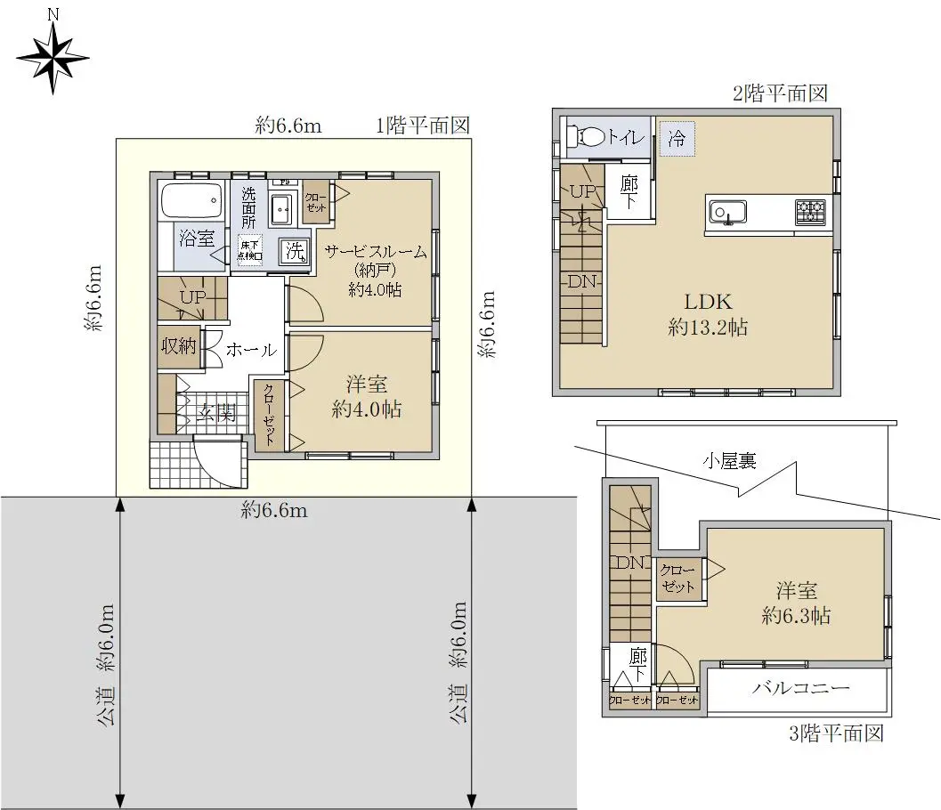 | 接道状況 | 一方道路・南6m(公道)接面6.6m |