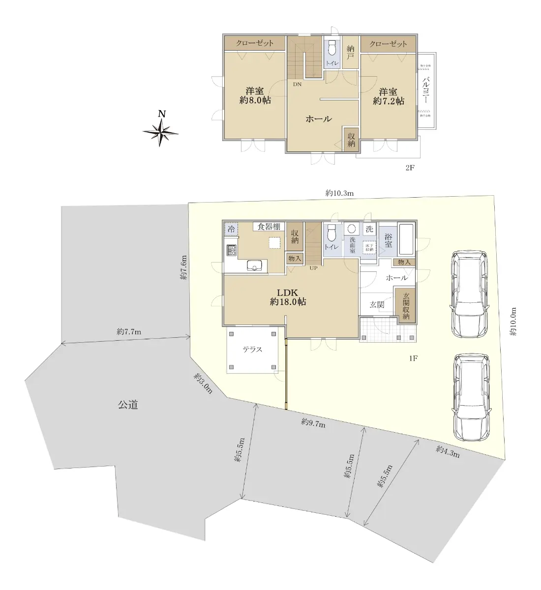 ・ 駐車スペース2台分確保(※車種によります)。