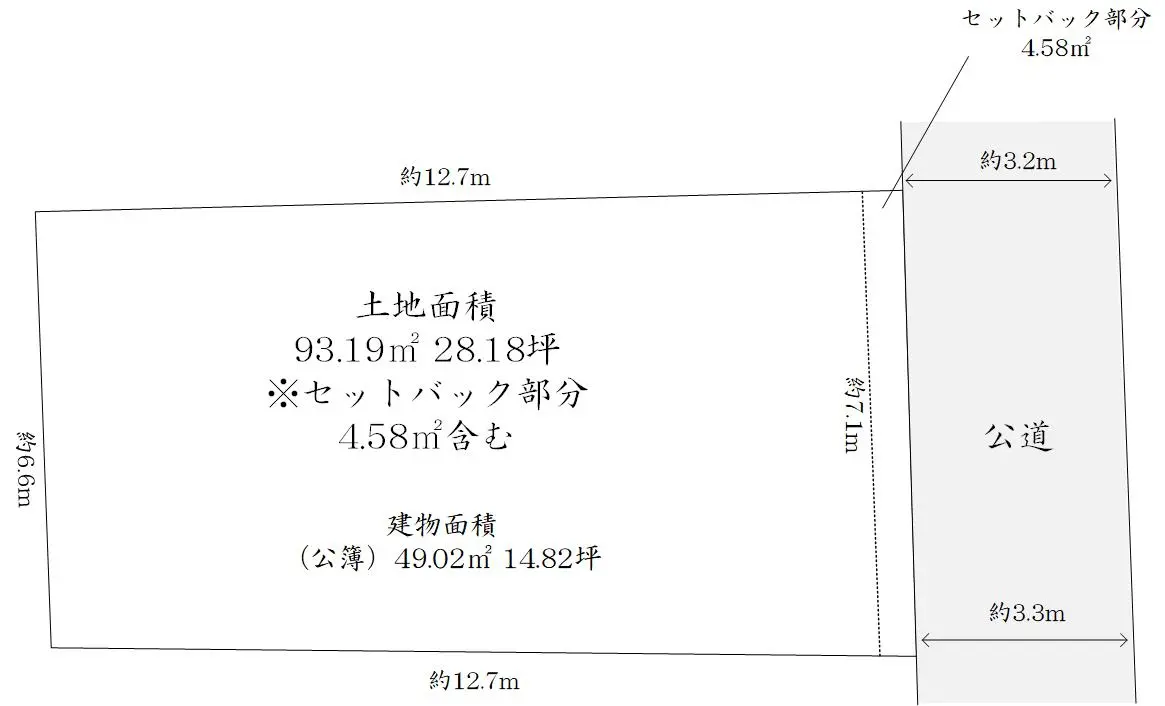| 土地面積 | 93.19m2(約28.18坪)/セットバック:4.58m2含む |