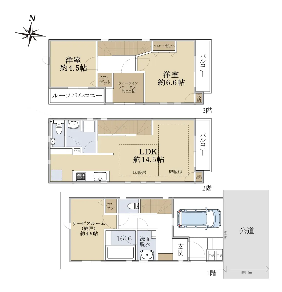 | 接道状況 | 一方道路・東4.5m(公道)接面4.4m |