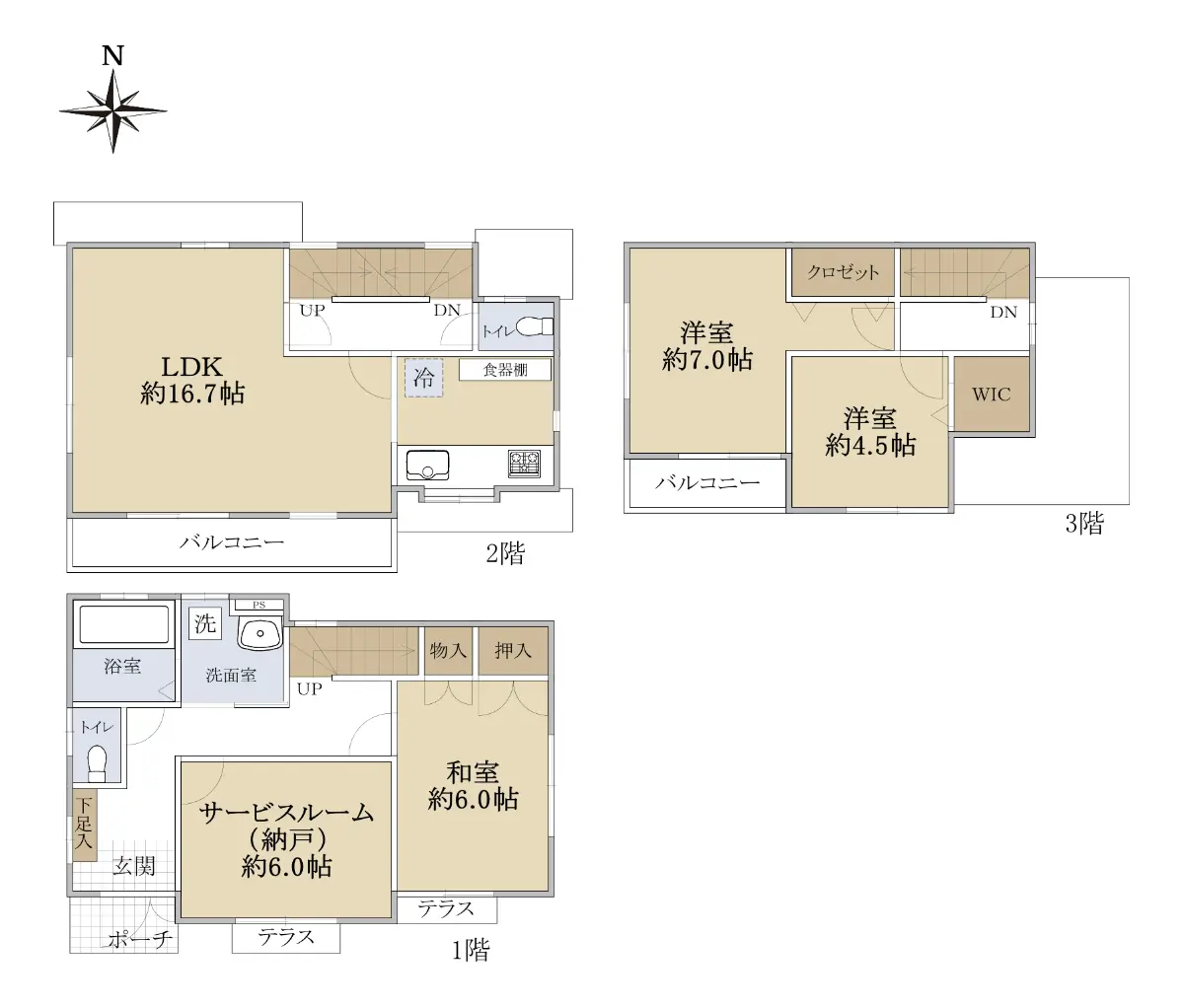 | 間取り | 3SLDK ※Sはサービスルーム(納戸) |