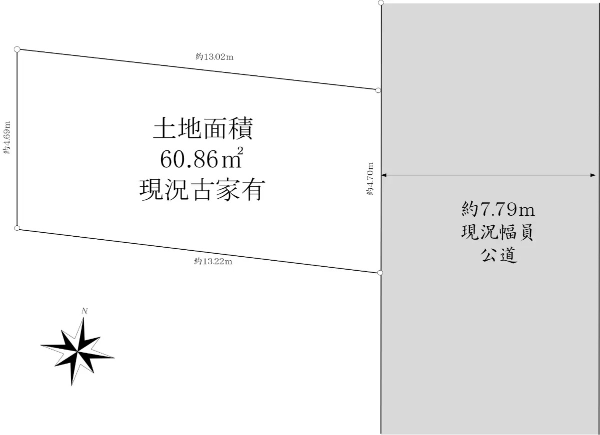 | 土地面積 | 60.87m2(約18.41坪)※公簿 |