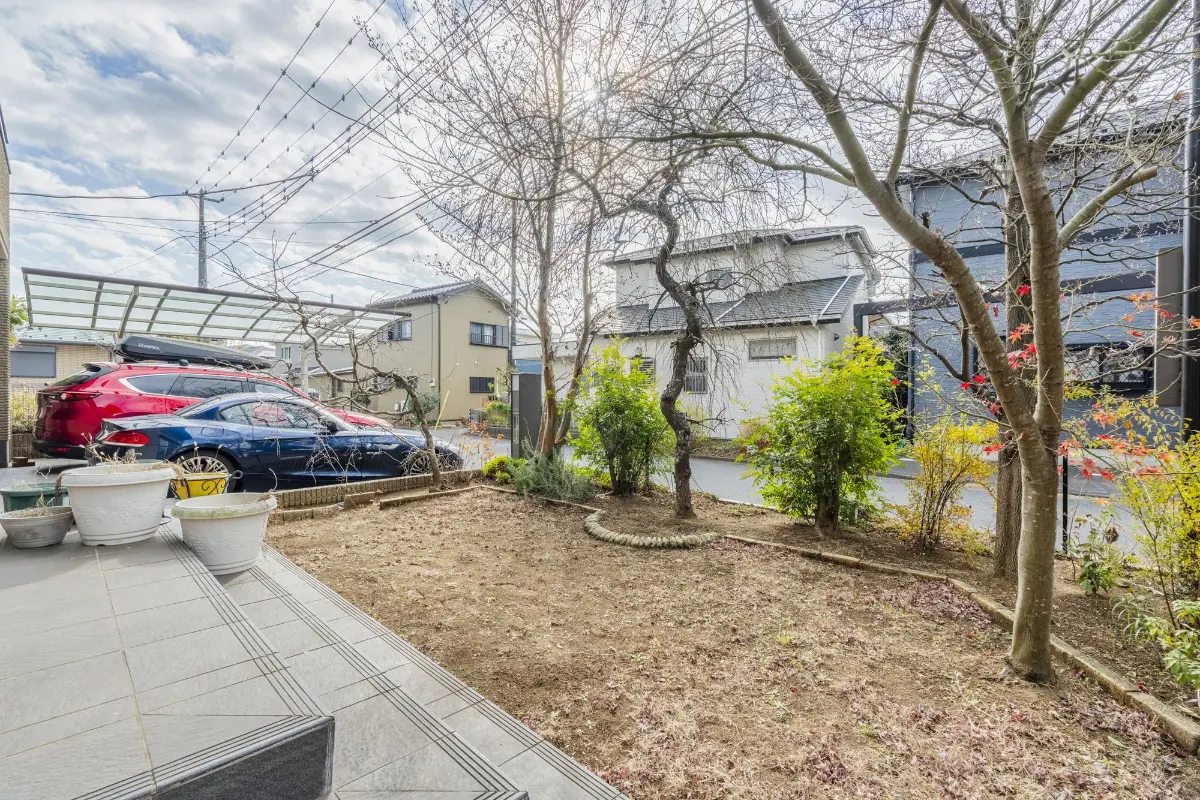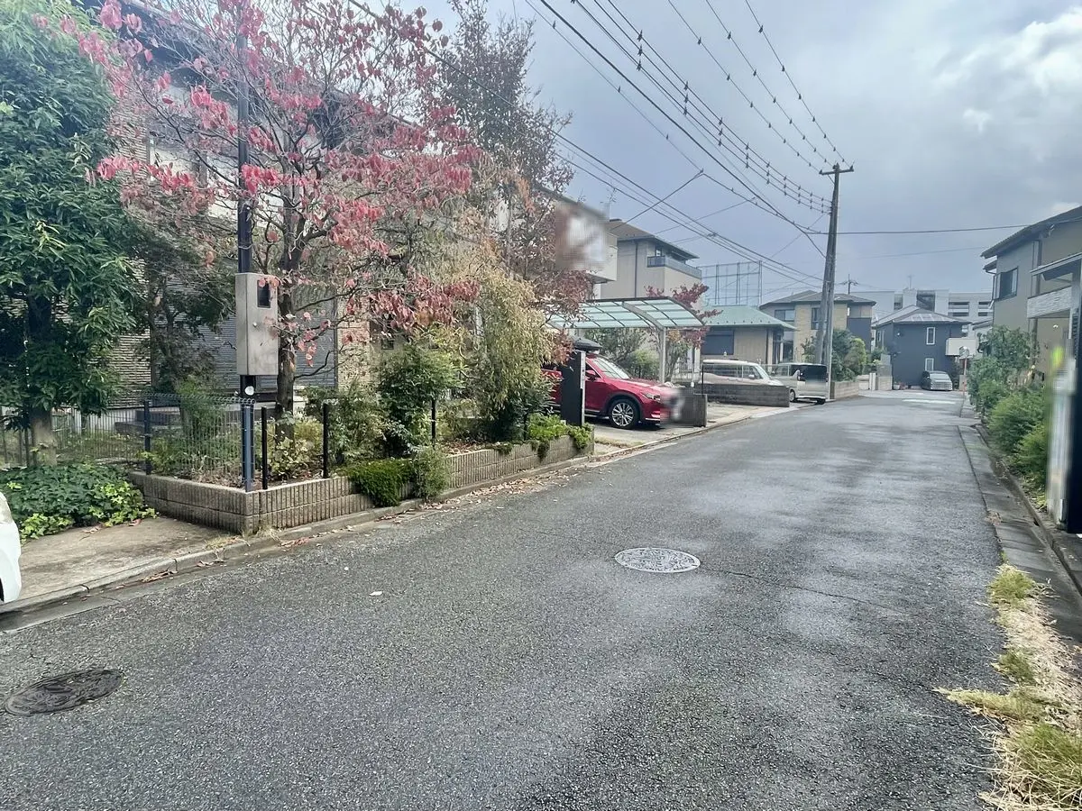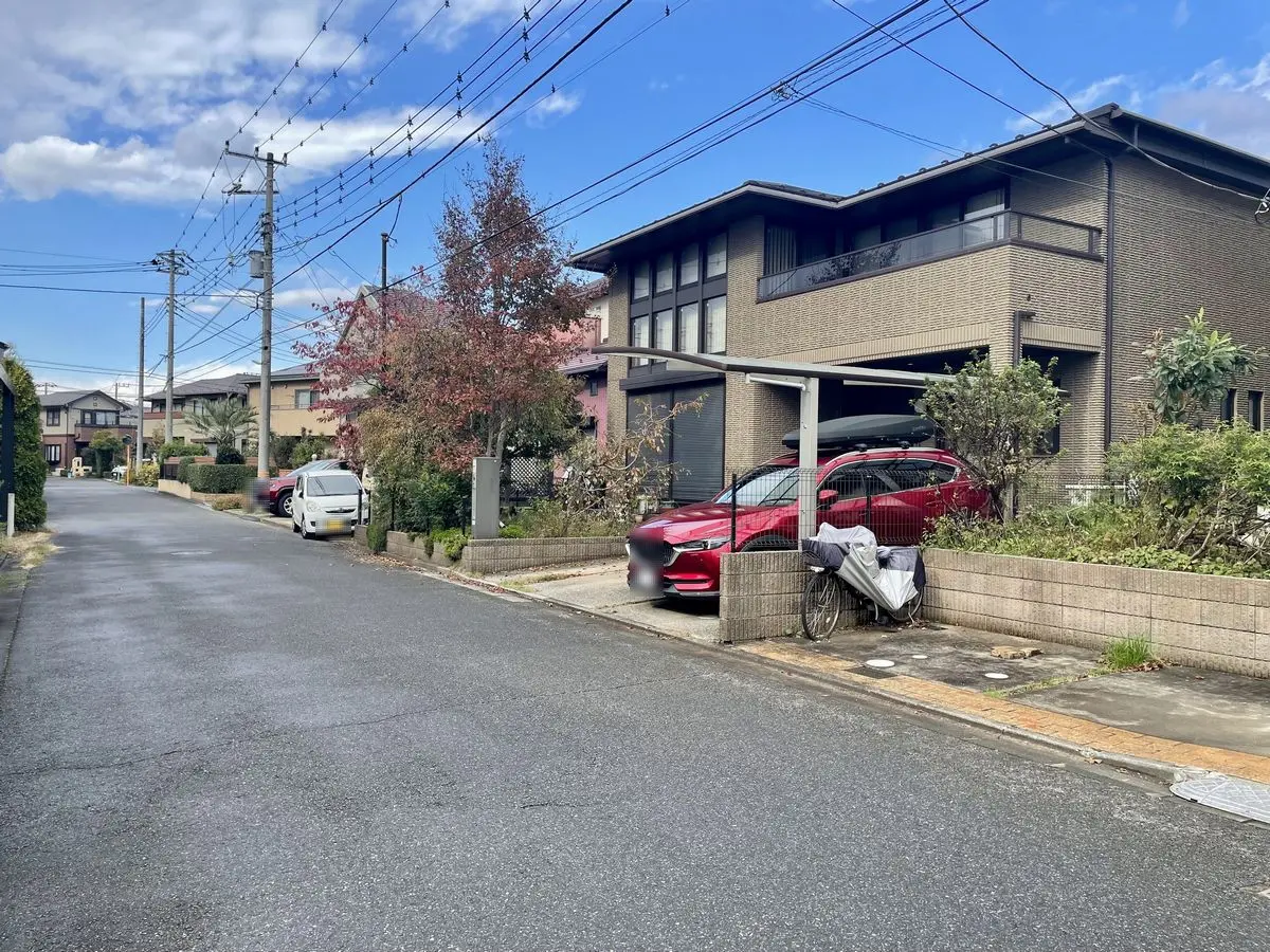 南西向きのため陽当たり良好で、前面道路は幅員約6.0mの公道に面しており前面道路との高低差もないためお車・自転車・ベビーカー等の出入りもしやすいです。玄関ポーチの上部に2階のバルコニーが配置されているので、雨の日でも濡れにくくお出かけ時にも慌てずに出入り出来ます。