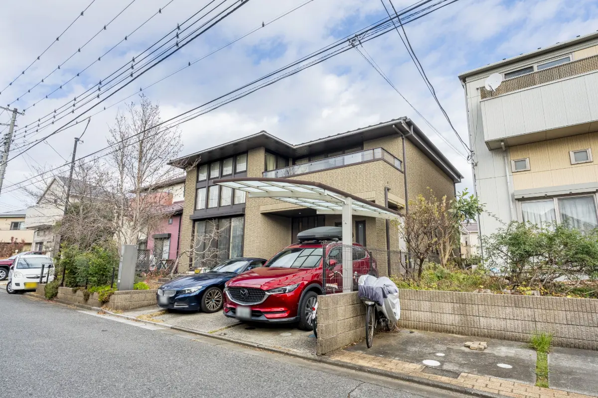 東葉高速鉄道「船橋日大前」駅まで徒歩8分、「八千代緑が丘」駅まで徒歩11分と、通勤・通学に便利な立地に位置する、ミサワホーム施工の軽量鉄骨2階建住宅です。ブラウンの外壁が落ち着いた印象を与え、全体的に統一感のあるおしゃれな外観です。