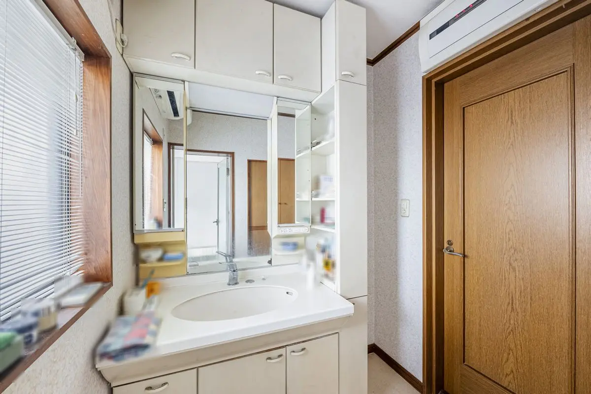 水まわりも使い勝手が良く、浴室には出窓が設けられ自然光が差し込み通風も良好です。洗面所には収納付き洗面台と物入が備わり、日用品の整理がしやすい仕様です。