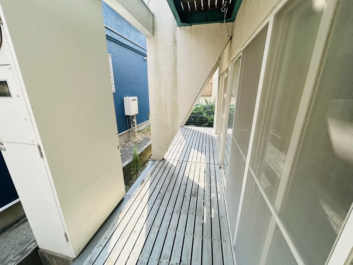 ・1階東側は、サンルームにもなる廊下部分にテラスが連続しており、採光・通風良好です。