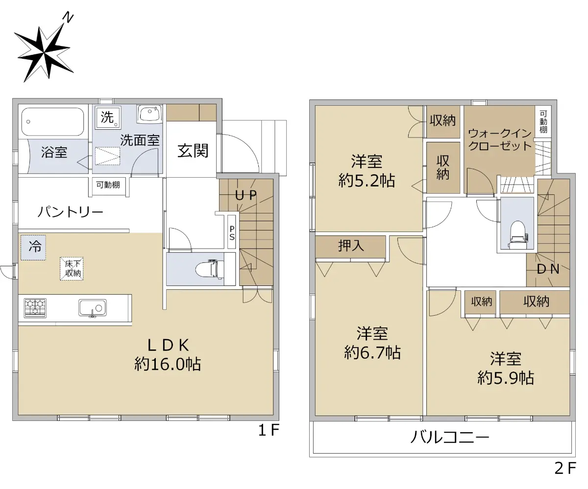 全居室にクローゼットがあるほか、ファミリークロークや床下収納など収納が豊富で生活スペースをすっきりとお使いいただけます。