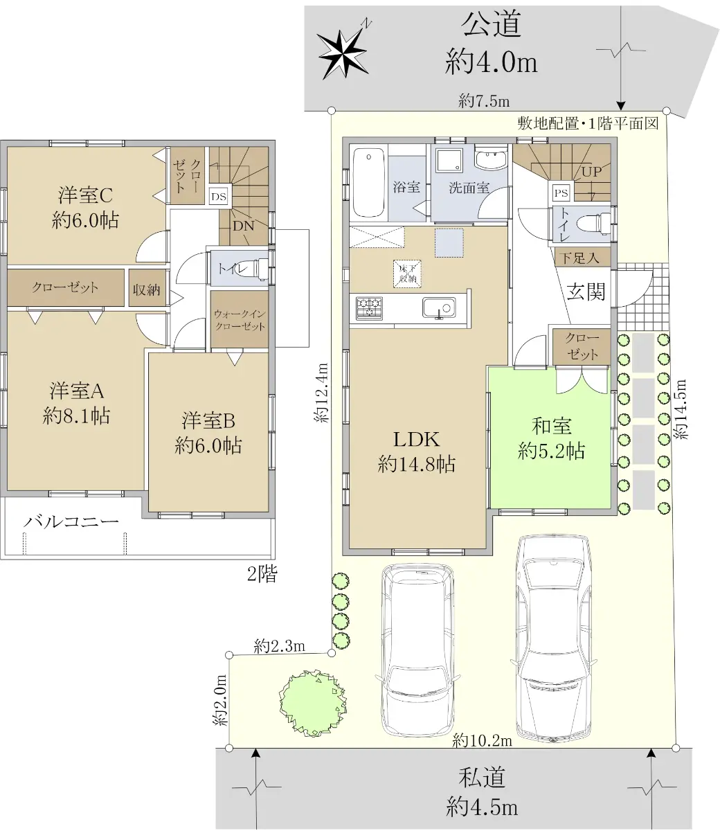 ※南東側私道 幅員約4.5m 間口約10.2m