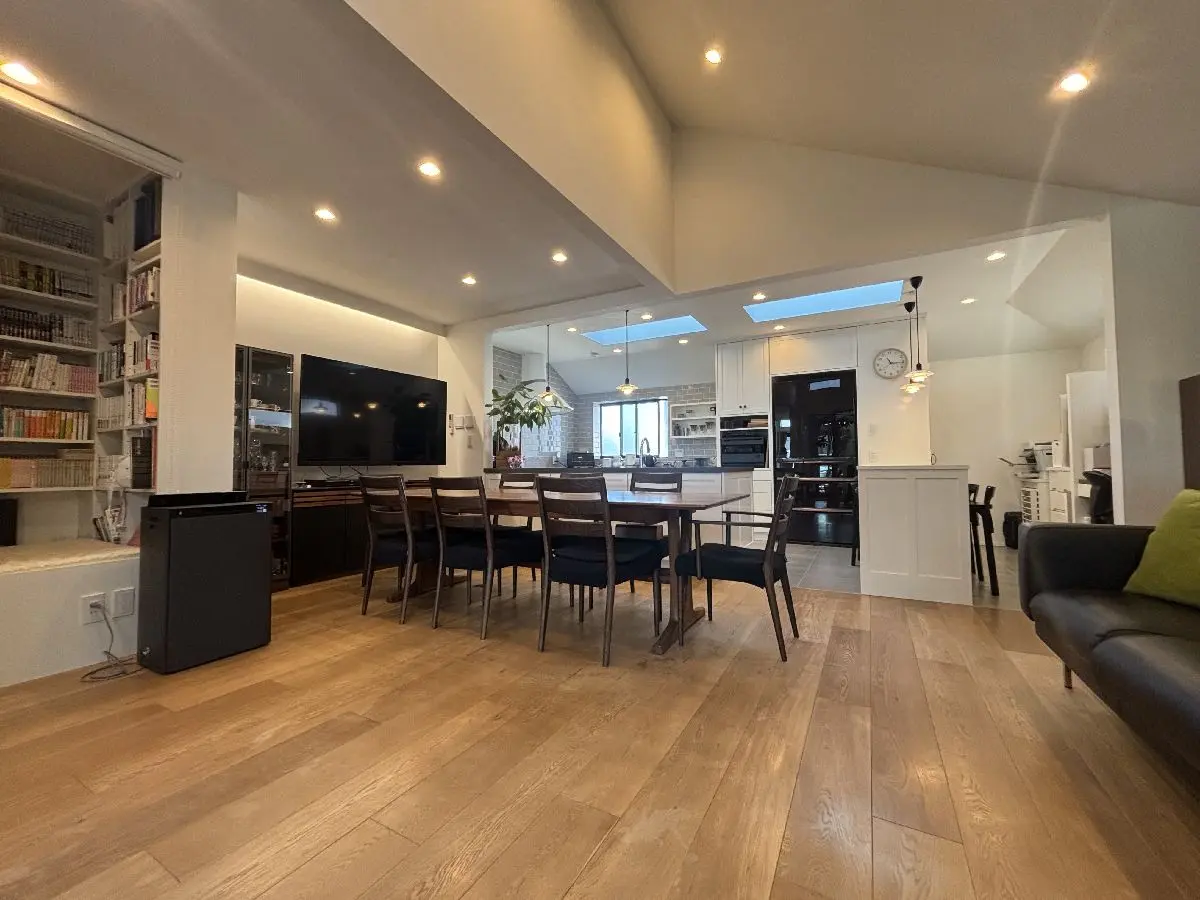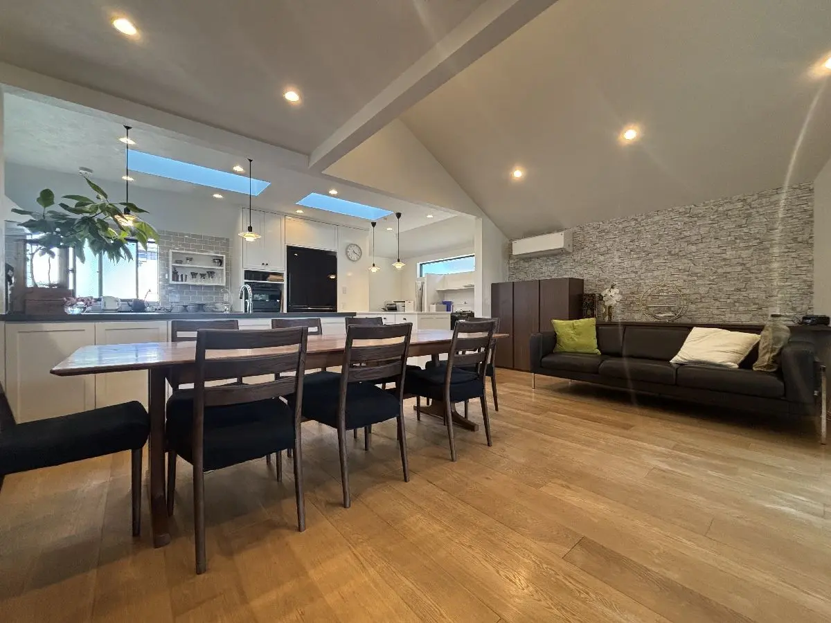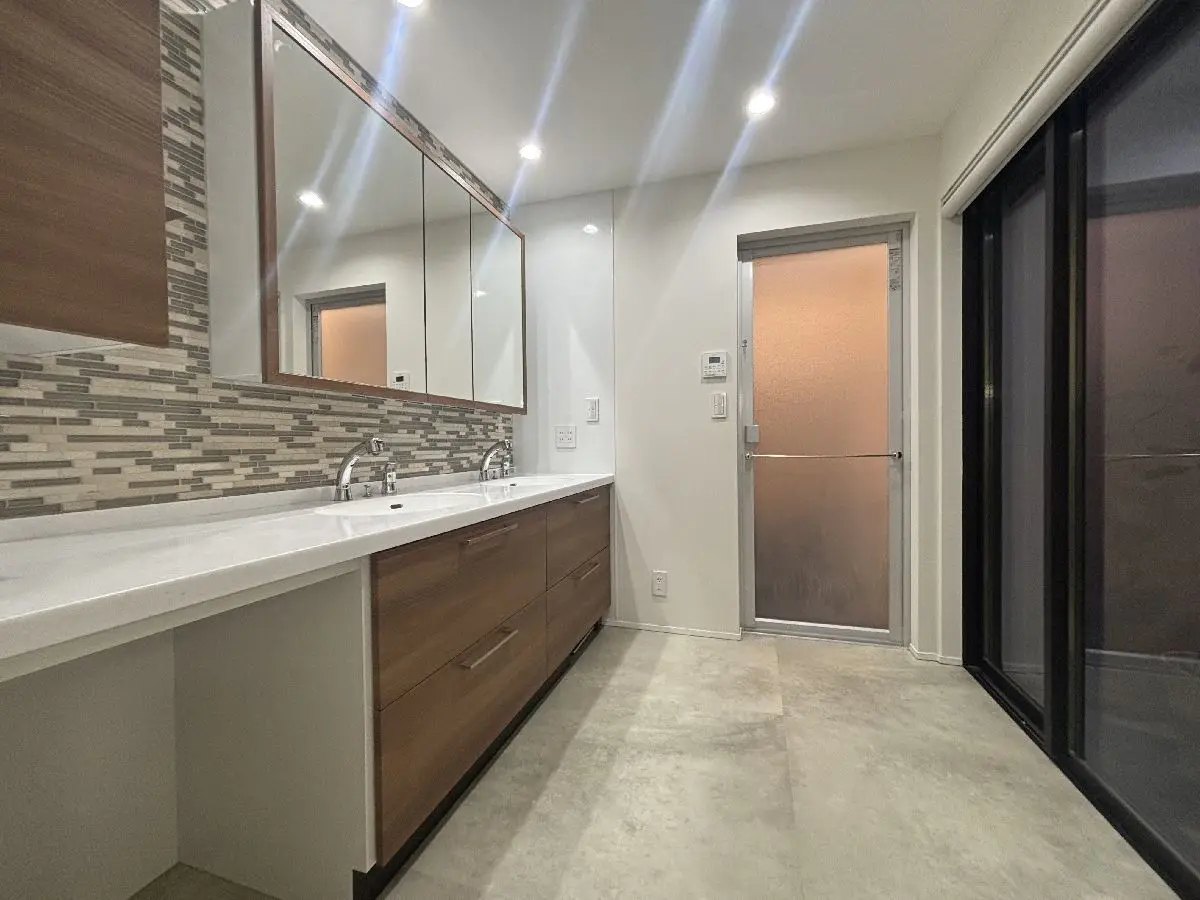 パティオと天窓で明るくリビング、ダイニングは開放感があります洗面台は2ボールでゆったりと利用出来ます