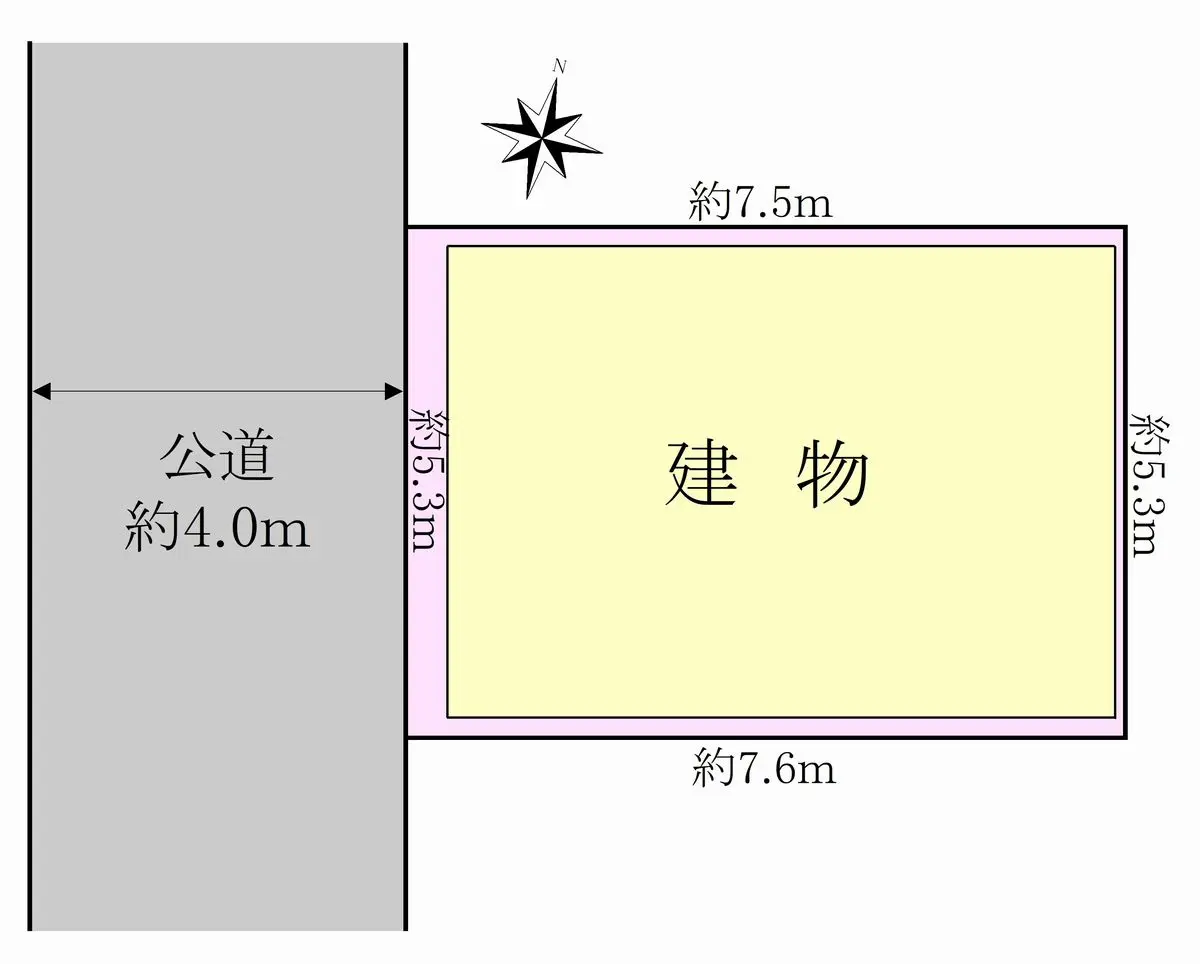 | 接道状況 | 一方道路・西4m(公道)接面5.3m |