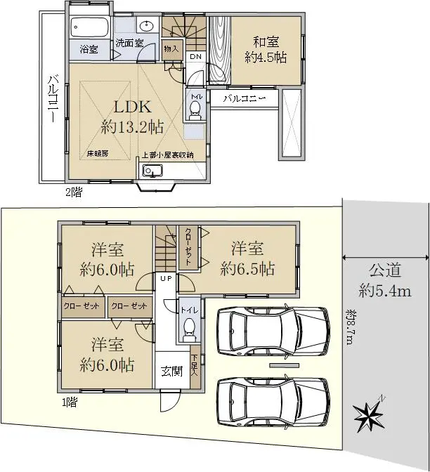 | 接道状況 | 一方道路・北東5.4m(公道)接面8.7m |