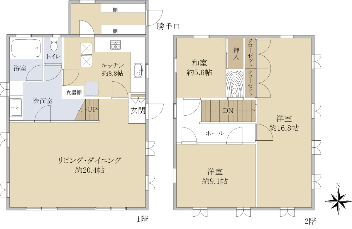 LDK約29.2帖、主寝室約16.8帖のゆったりとした間取りで、