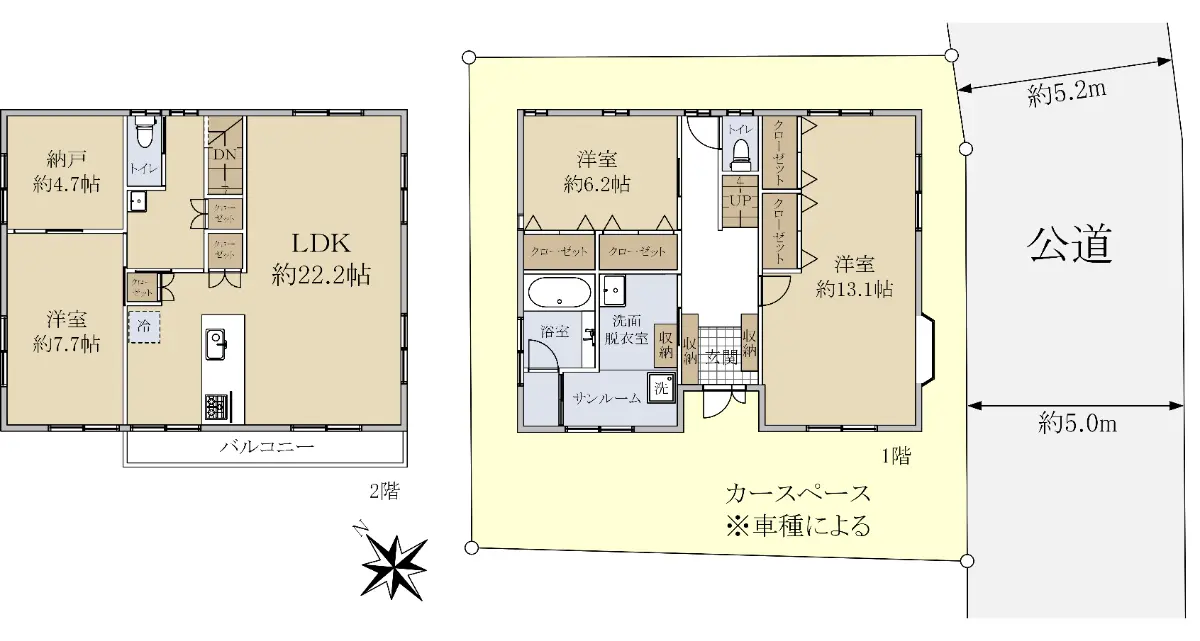 | 接道状況 | 一方道路・南東5m(公道)接面11.7m |