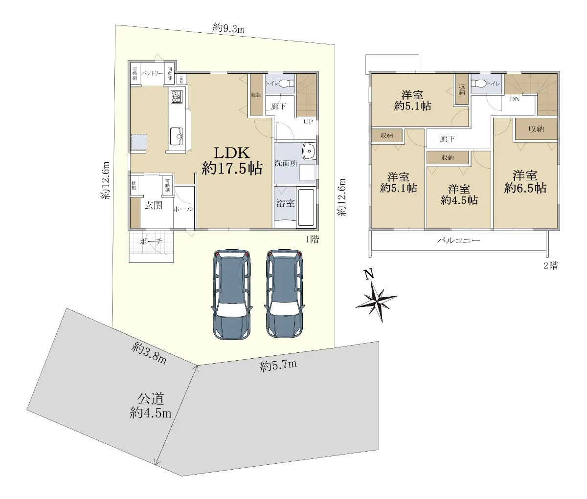 | 接道状況 | 一方道路・南西4.5m(公道)接面9.5m |
