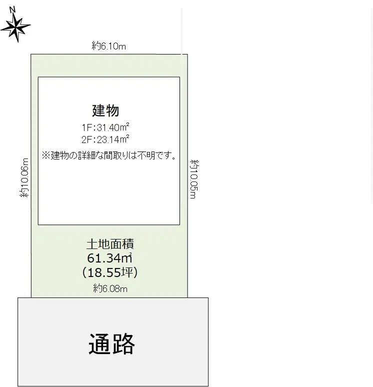 | 土地面積 | 61.34m2(約18.55坪)/他に私道負担:9.36m2あり |